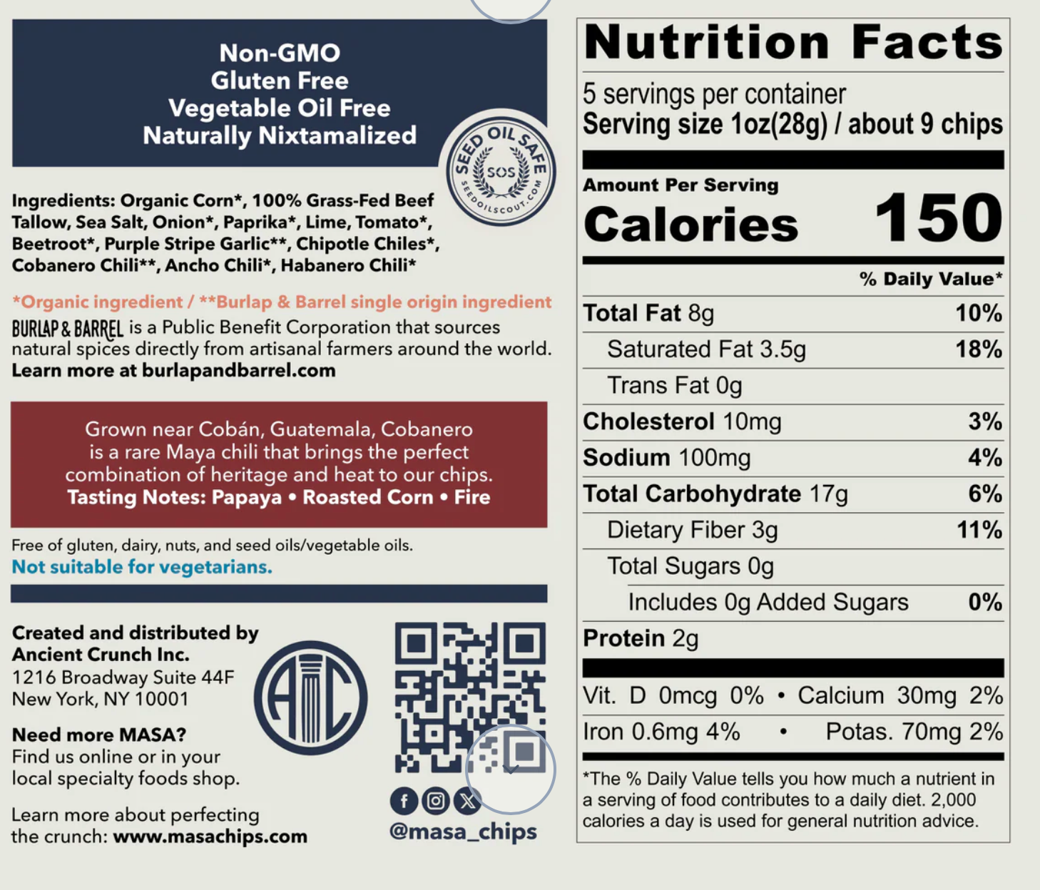 Unit price perExperience the perfect balance of heat and heritage with MASA Cobanero chips. Made with real Cobanero chili and organic ingredients, these chips offer a spicy, savory treat without MSG, maltodextrin, or seed oils. Ideal for snacking or nachos.